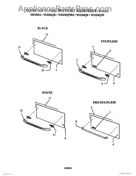 Parts for Thermador WD24QW: 05 - Drawer Panel Support Parts