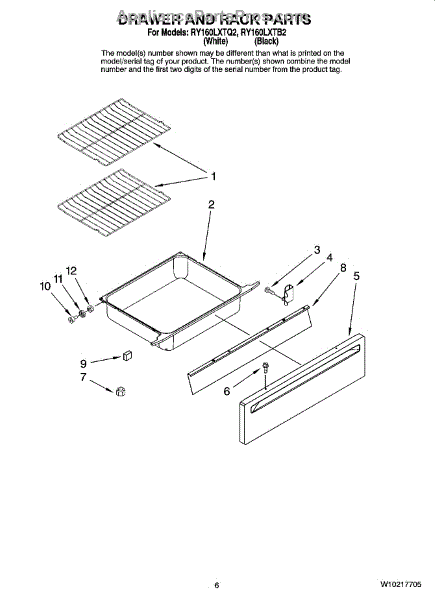 Parts for Whirlpool RY160LXTB2: 05 - Drawer And Rack Parts