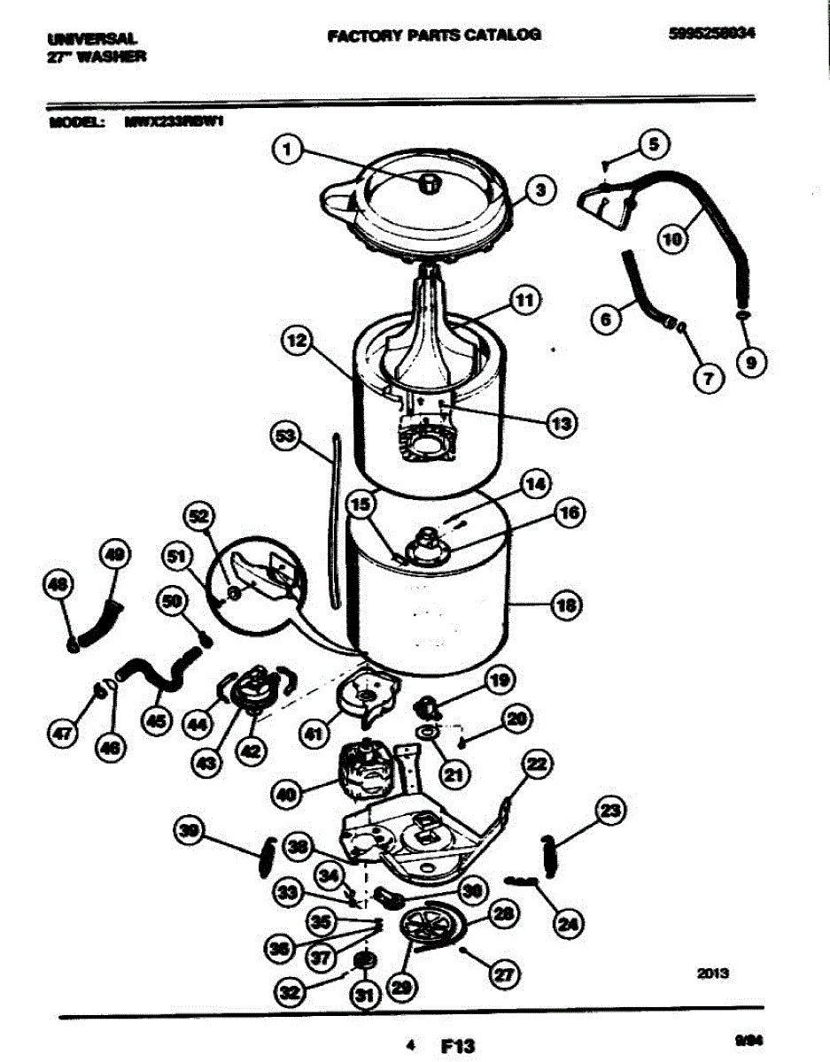 The Spin Bearing Washer is an OEM part for Frigidaire washing machines. Situated inside the transmission housing, this thin metal washer acts as a subsurface support for the belt pulley bearing. The spin-bearing washer facilitates smooth, balanced rotation essential for agitated and spun wash cycles. Causes of a bad spin-bearing washer include wear and fatigue from years of successive rotations, potentially allowing excessive movement between housing components. Symptoms of a bad spin-bearing washer involve: