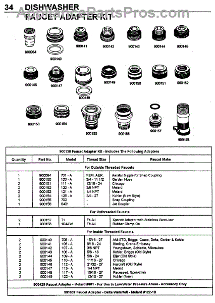 Parts for Maytag DWC7400ABW: 05 - Faucet Adapter Kit (Inside Threaded) Parts