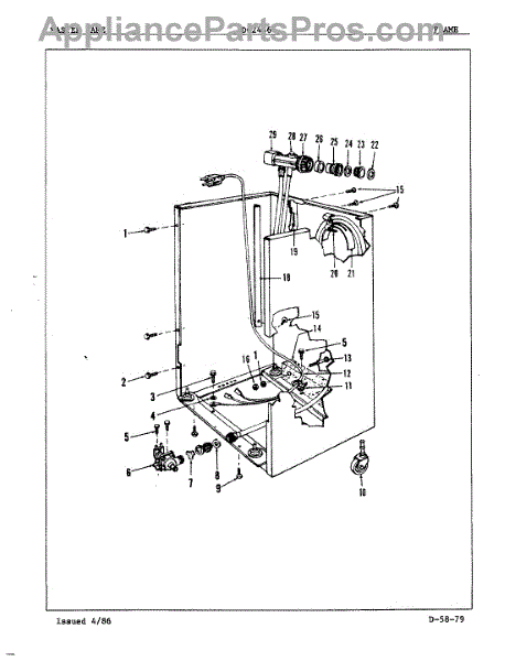 This factory screw secures appliance components to their mounting points. Replace missing, worn, or stripped hardware to restore a tight fit, proper alignment, and quieter operation across the affected assembly.