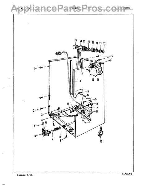 This factory screw secures appliance components to their mounting points. Replace missing, worn, or stripped hardware to restore a tight fit, proper alignment, and quieter operation across the affected assembly.