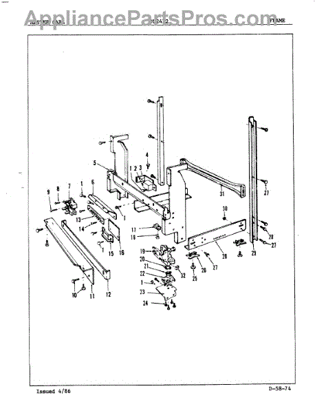 This factory screw secures appliance components to their mounting points. Replace missing, worn, or stripped hardware to restore a tight fit, proper alignment, and quieter operation across the affected assembly.