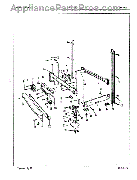 This factory screw secures appliance components to their mounting points. Replace missing, worn, or stripped hardware to restore a tight fit, proper alignment, and quieter operation across the affected assembly.