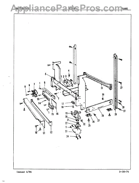 This factory screw secures appliance components to their mounting points. Replace missing, worn, or stripped hardware to restore a tight fit, proper alignment, and quieter operation across the affected assembly.
