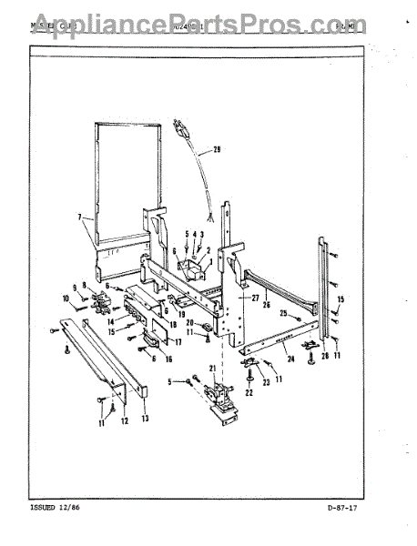 This factory screw secures appliance components to their mounting points. Replace missing, worn, or stripped hardware to restore a tight fit, proper alignment, and quieter operation across the affected assembly.