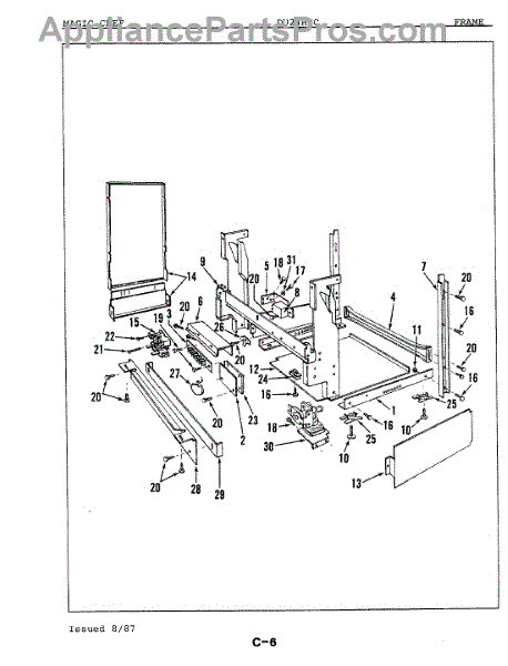 This factory screw secures appliance components to their mounting points. Replace missing, worn, or stripped hardware to restore a tight fit, proper alignment, and quieter operation across the affected assembly.