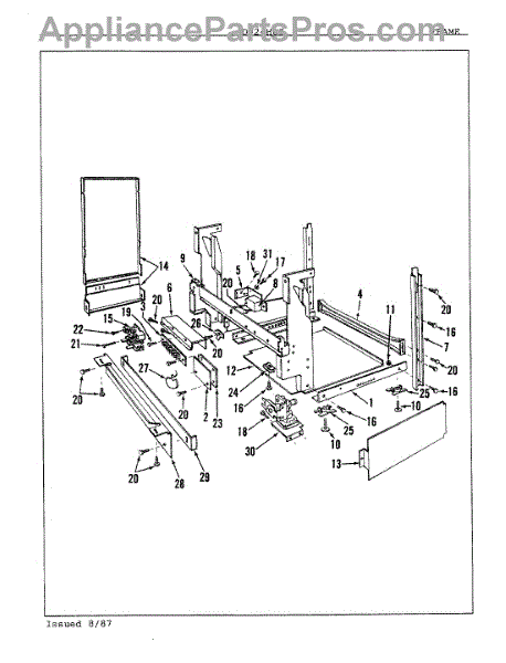 This factory screw secures appliance components to their mounting points. Replace missing, worn, or stripped hardware to restore a tight fit, proper alignment, and quieter operation across the affected assembly.