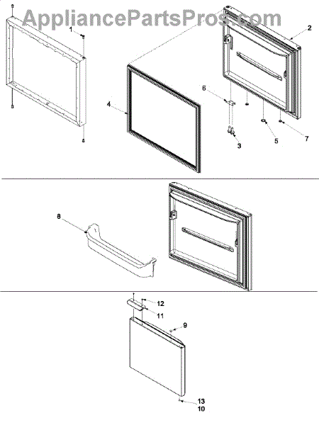 Black freezer door handle for bottom-mount refrigerators. Replaces cracked, broken, or worn handles. Mounts to freezer door with two screws.