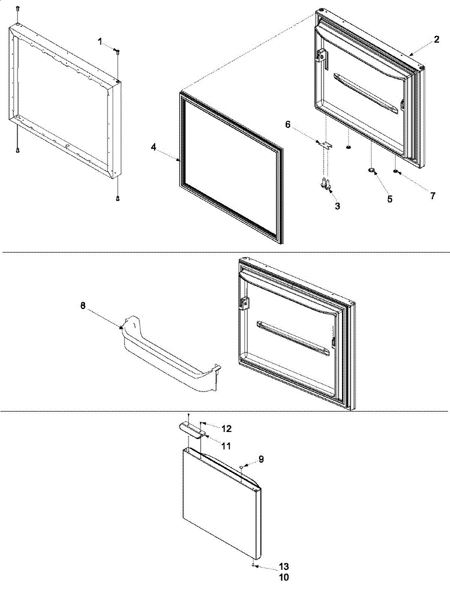 Seals the refrigerator door to keep cold air in and moisture out. Replace if worn, deformed, or causing temperature issues. Confirm fit with your model.