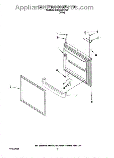 Parts for Whirlpool CB19G6W00W6: 05 - Freezer Door Parts