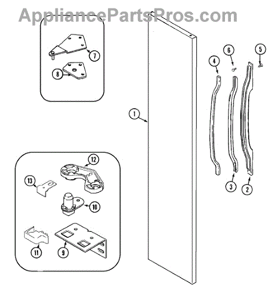 This refrigerator door closer restores smooth, positive door action. When worn, the door can click, bind, or swing open. Replacing it helps the door seal properly to maintain temperatures and limit frost or moisture.