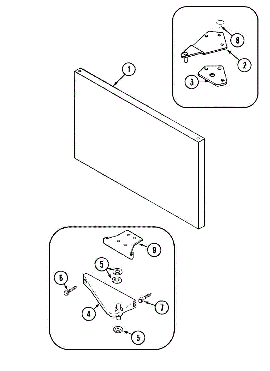 Mounting screw secures panels, brackets, and trim on refrigerators and washers. Replace when fasteners are missing, loose, stripped, or damaged.