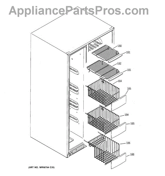The Shelf Slideout is an OEM part for GE freezers. It is designed to provide convenient and organized storage within the freezer compartment, allowing easy access to stored items. The slideout feature enables users to pull the shelf forward, making it simpler to reach items stored at the back.