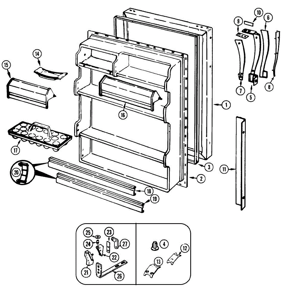 Parts for Admiral AT19M9A / DE54A: 05 - Fresh Food Door Parts