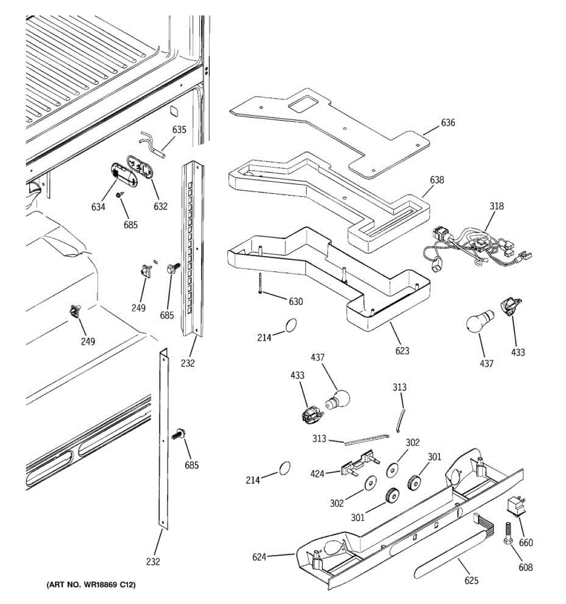 The Light Bulb (40W) is an OEM component for GE refrigerators. As an essential task lamp, it illuminates the interior of the refrigerator and freezer compartments.
