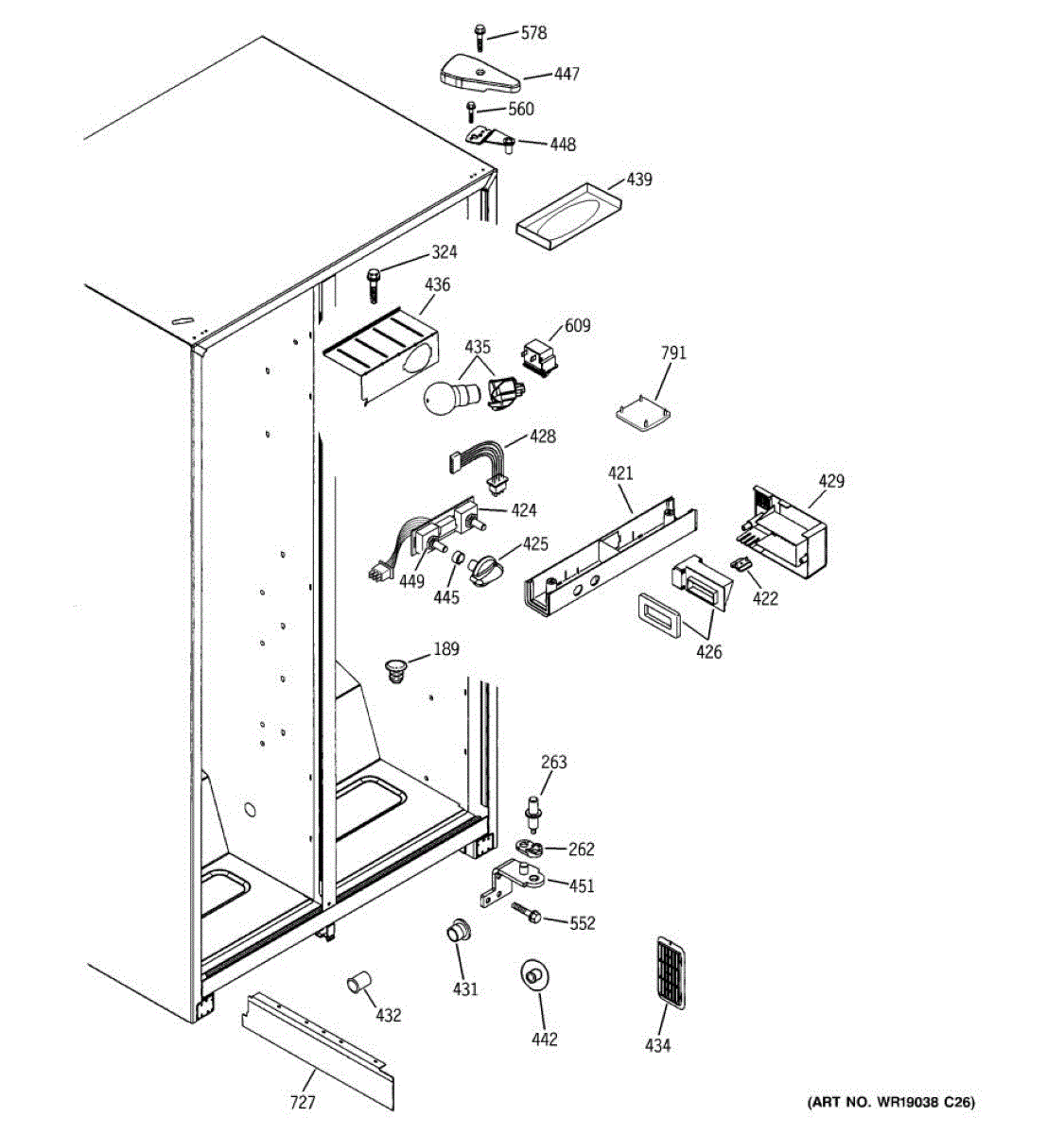 The Light Switch is an OEM replacement part for GE refrigerators. It controls the interior light, turning it on when the refrigerator door is opened and off when the door is closed. This ensures proper illumination for visibility when accessing the refrigerator's contents.