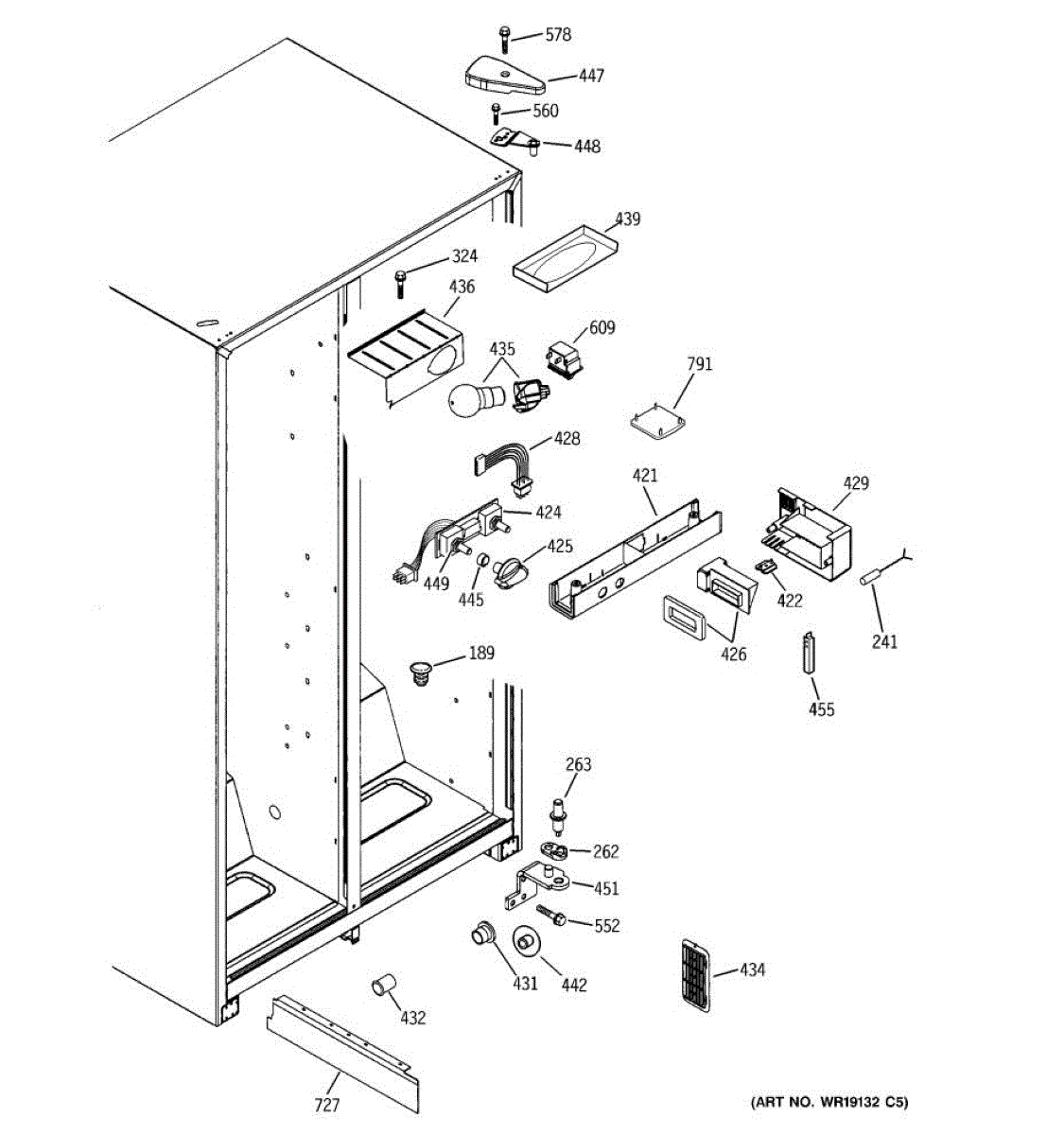 The Light Switch is an OEM replacement part for GE refrigerators. It controls the interior light, turning it on when the refrigerator door is opened and off when the door is closed. This ensures proper illumination for visibility when accessing the refrigerator's contents.