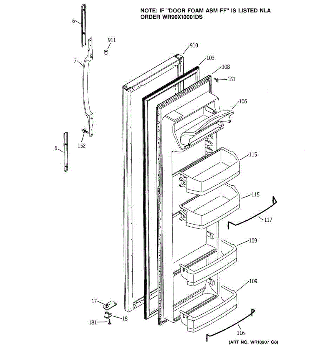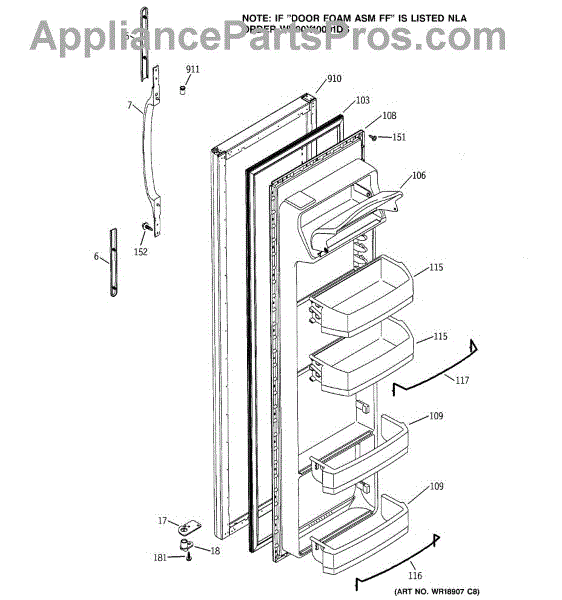Parts for Ge RSG25IEMDFWW: 05 - Fresh Food Door Parts