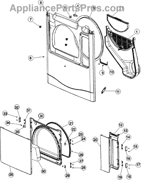 The Door Catch Kit is an OEM part for Whirlpool dryers. It includes the door catch and the necessary mounting hardware to secure it in place. This kit ensures the dryer door remains securely closed during operation, preventing heat loss and ensuring the appliance functions efficiently.