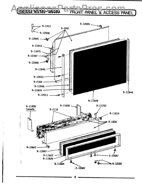 Parts for Maytag WU103: 05 - Front Panel & Access Panel Parts