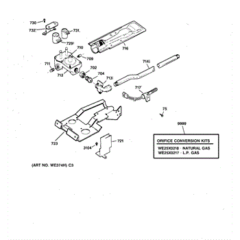 Parts for Ge NBXR453GV1AA: 05 - Gas Valve & Burner Assembly Parts