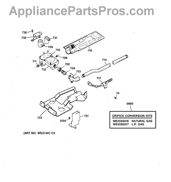 Parts for Ge NWSR473GV0WW: 05 - Gas Valve & Burner Assembly Parts