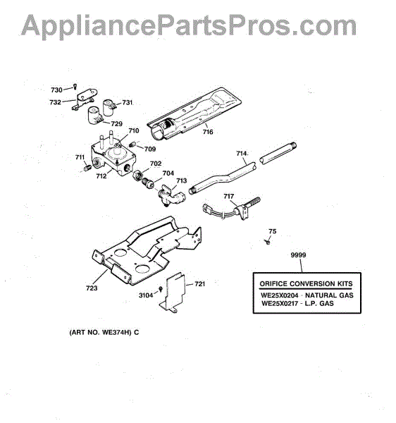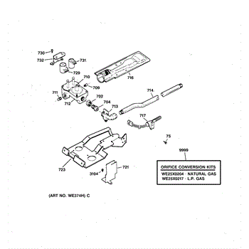 Meters gas flow to the dryer burner. Replace if damaged, clogged, or when converting between natural gas and LP. Installs at the burner assembly.