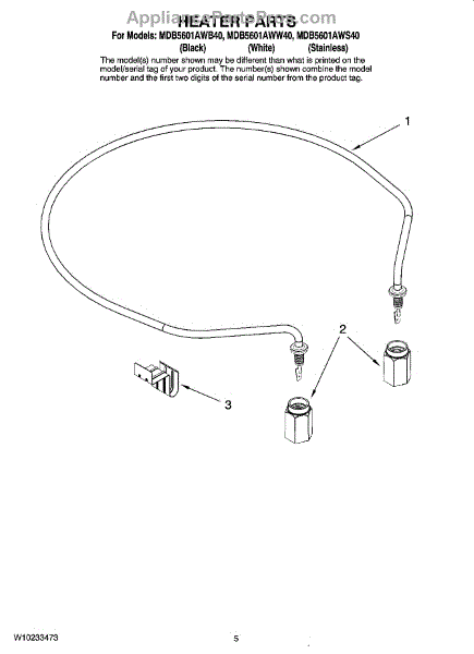 Parts for Maytag MDB5601AWS40: 05 - Heater Parts