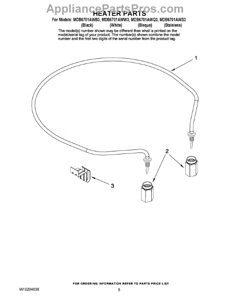 Parts for Maytag MDB6701AWS3: 05 - Heater Parts