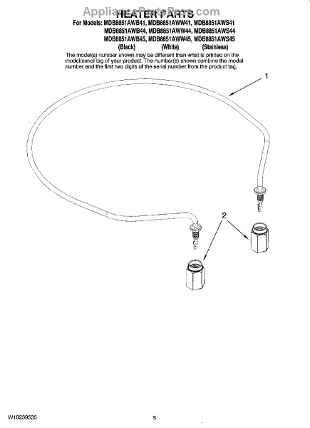 Parts for Maytag MDB8851AWS44: 05 - Heater Parts