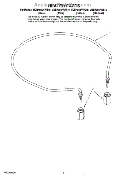 Parts for Maytag MDBH980AWB10: 05 - Heater Parts