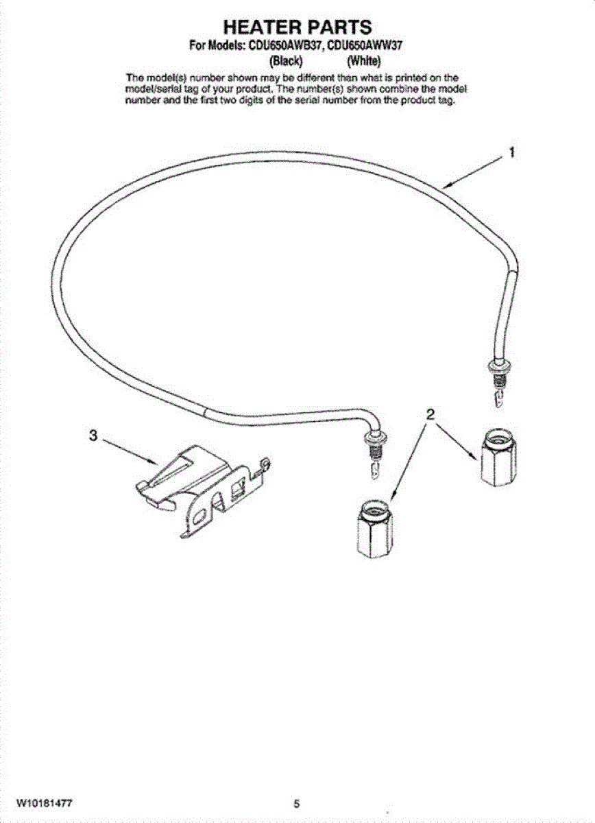 Parts for Whirlpool CDU650AWB37: 05 - Heater Parts
