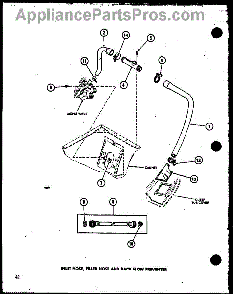 This small strainer sits inside the washer's water inlet valve and screens out sand, rust, and sediment from the supply lines. Replacing a clogged or missing screen restores normal fill flow and helps protect the valve.