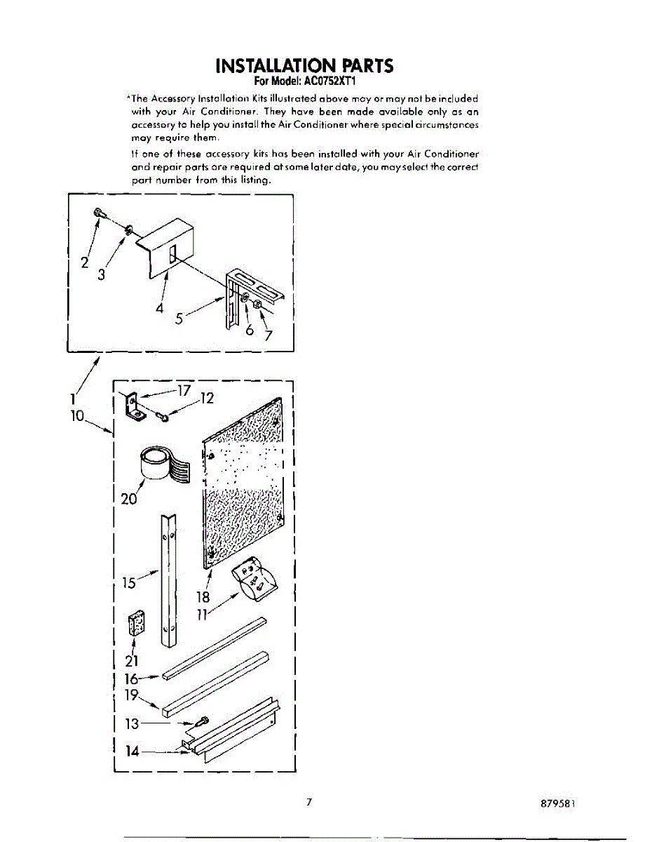 Parts for Whirlpool AC0752XT1: 05 - Installation Parts