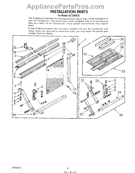 Parts for Whirlpool AC1504XT0: 05 - Installation Parts