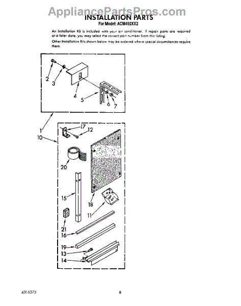 Parts for Whirlpool ACM492XX2: 05 - Installation Parts