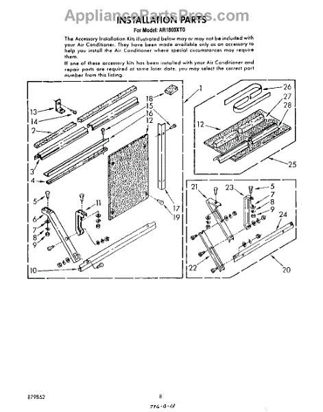 Parts for Whirlpool AR1800XT0: 05 - Installation Parts