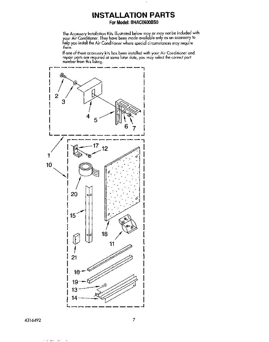 Parts for Whirlpool BHAC0600BS0: 05 - Installation Parts