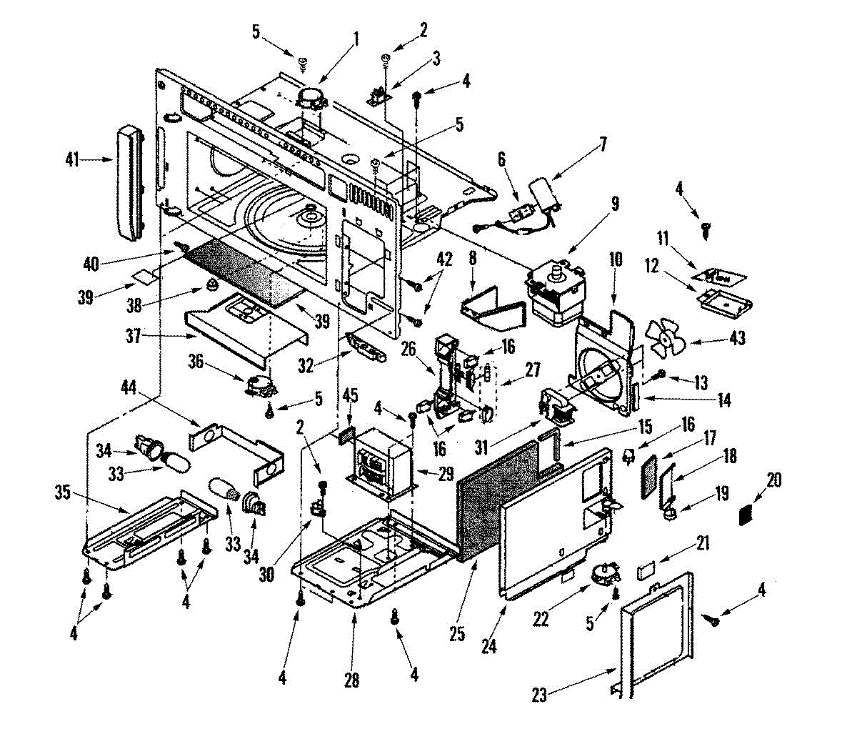 Secures microwave panels, brackets, and trim pieces. Replace missing, stripped, or damaged screws to restore proper alignment and fit of covers and components.