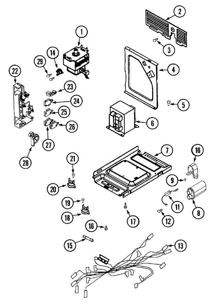 Secures microwave panels, brackets, and trim pieces. Replace missing, stripped, or damaged screws to restore proper alignment and fit of covers and components.