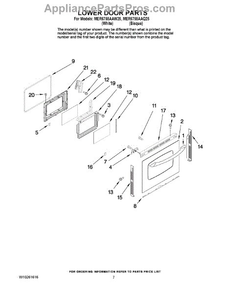 Parts for Maytag MER6755AAW25: 05 - Lower Door Parts