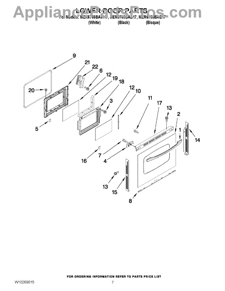 Parts for Maytag MER6765BAW17: 05 - Lower Door Parts