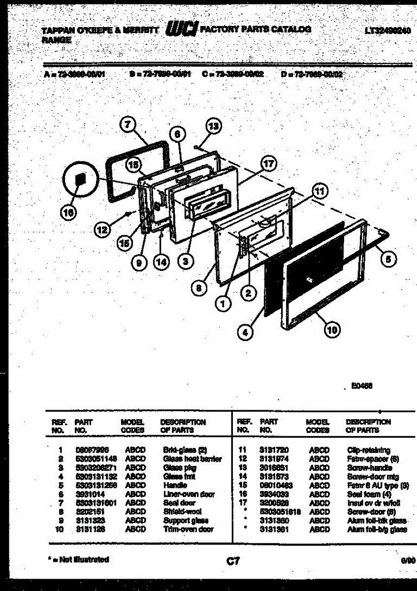Parts for Frigidaire 72-3989-23-02: 05 - Lower Oven Door Parts