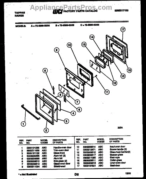 Parts for Frigidaire 72-3989-23-06: 05 - Lower Oven Door Parts
