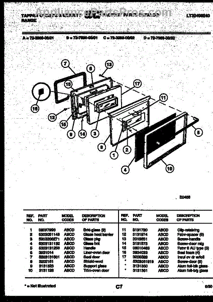Parts for Frigidaire 72-3989-66-02: 05 - Lower Oven Door Parts