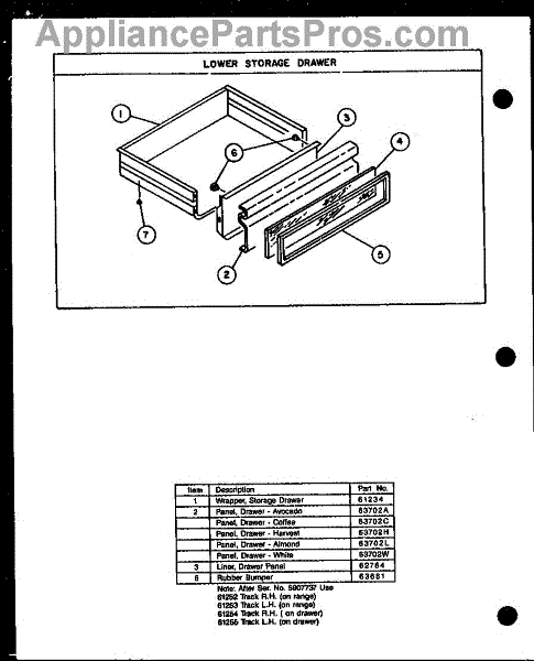 Parts for Amana GAK26TC: 05 - Lower Storage Drawer Parts