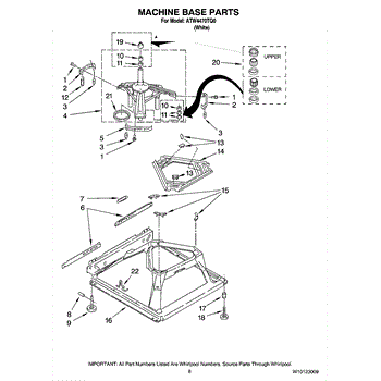 Used for direct drive washing machines. Complete assembly includes 2 level mechanism links, 1 level mechanism spring, 1 knurled pin, 2 rear feet, 1 pad plate, 1 suspension plate, 1 base pad, and 1 suspension spring retainer.