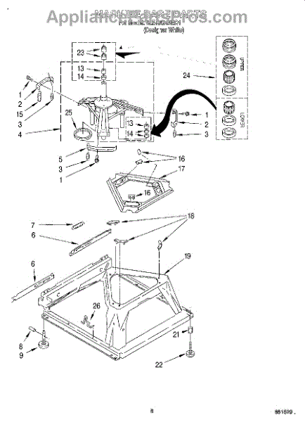 Base for washers. Supports the entire washer assembly and houses internal components. Replace if cracked, warped, or damaged from drops or impacts.