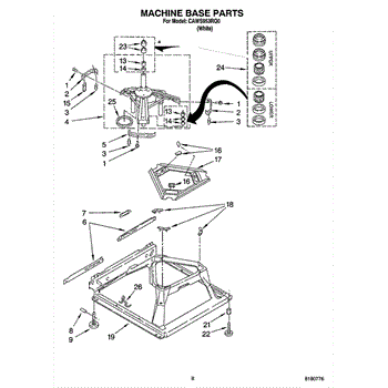 Used for direct drive washing machines. Complete assembly includes 2 level mechanism links, 1 level mechanism spring, 1 knurled pin, 2 rear feet, 1 pad plate, 1 suspension plate, 1 base pad, and 1 suspension spring retainer.